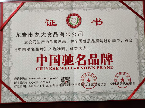 中國馳名品牌證書